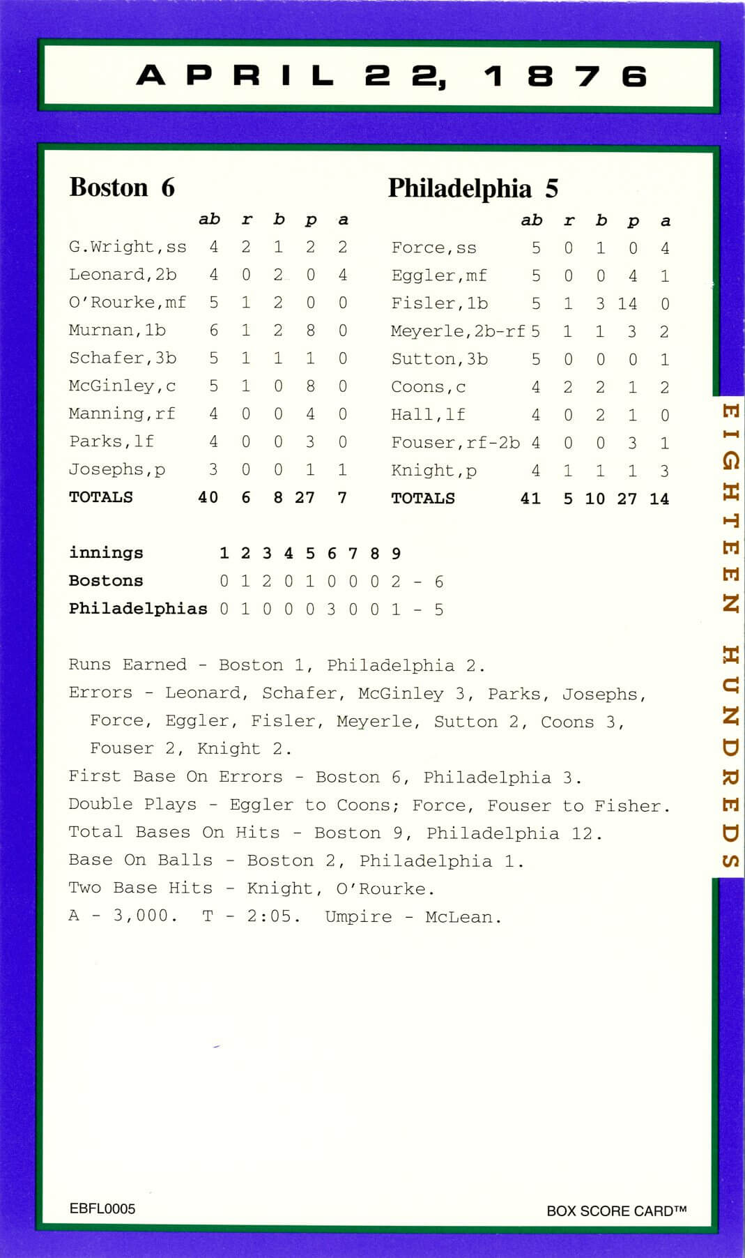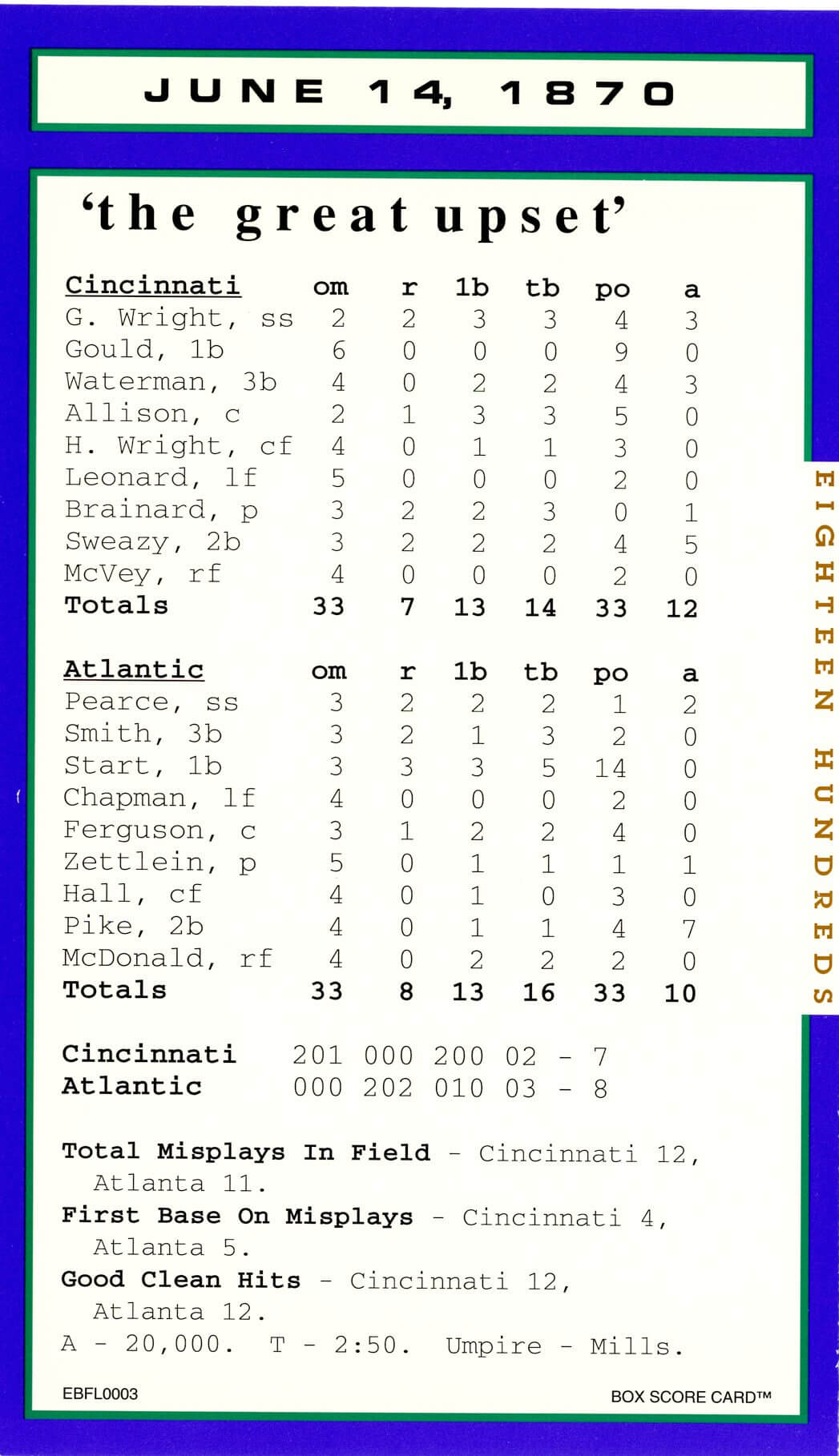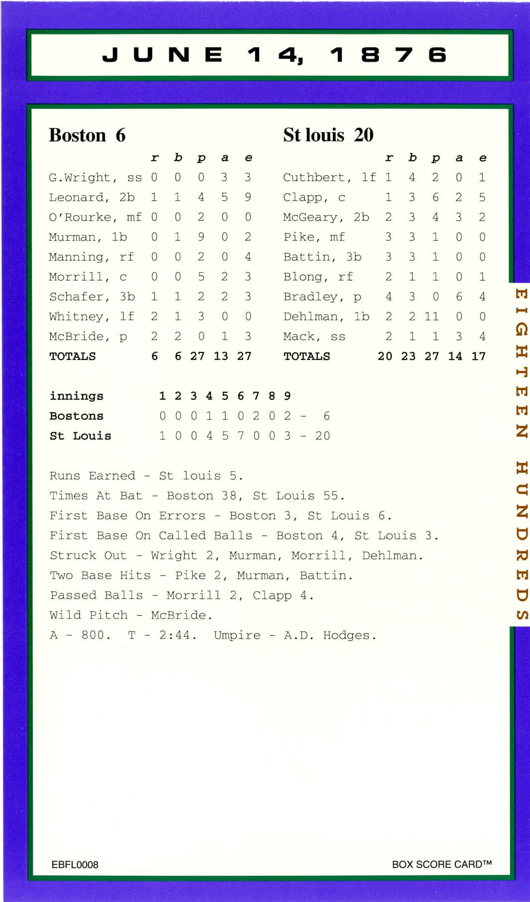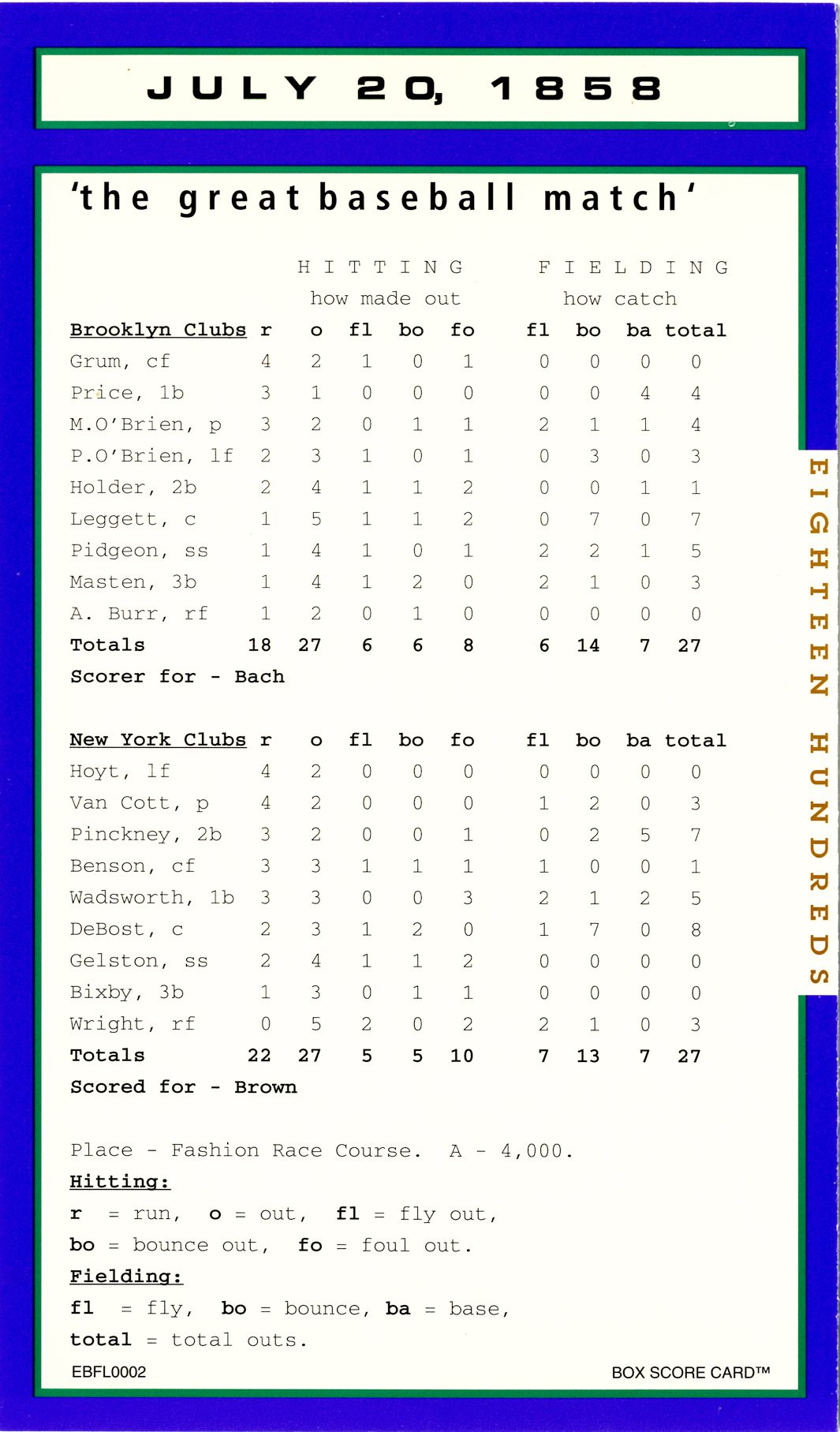 Baseball’s Box Score Eighteen Hundred Series