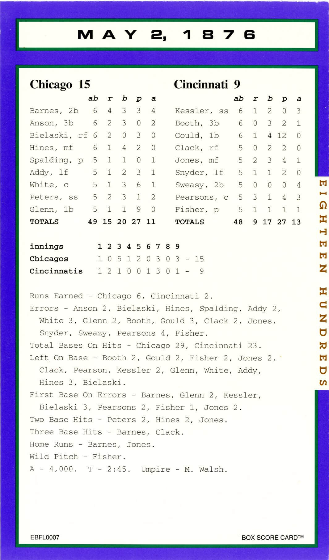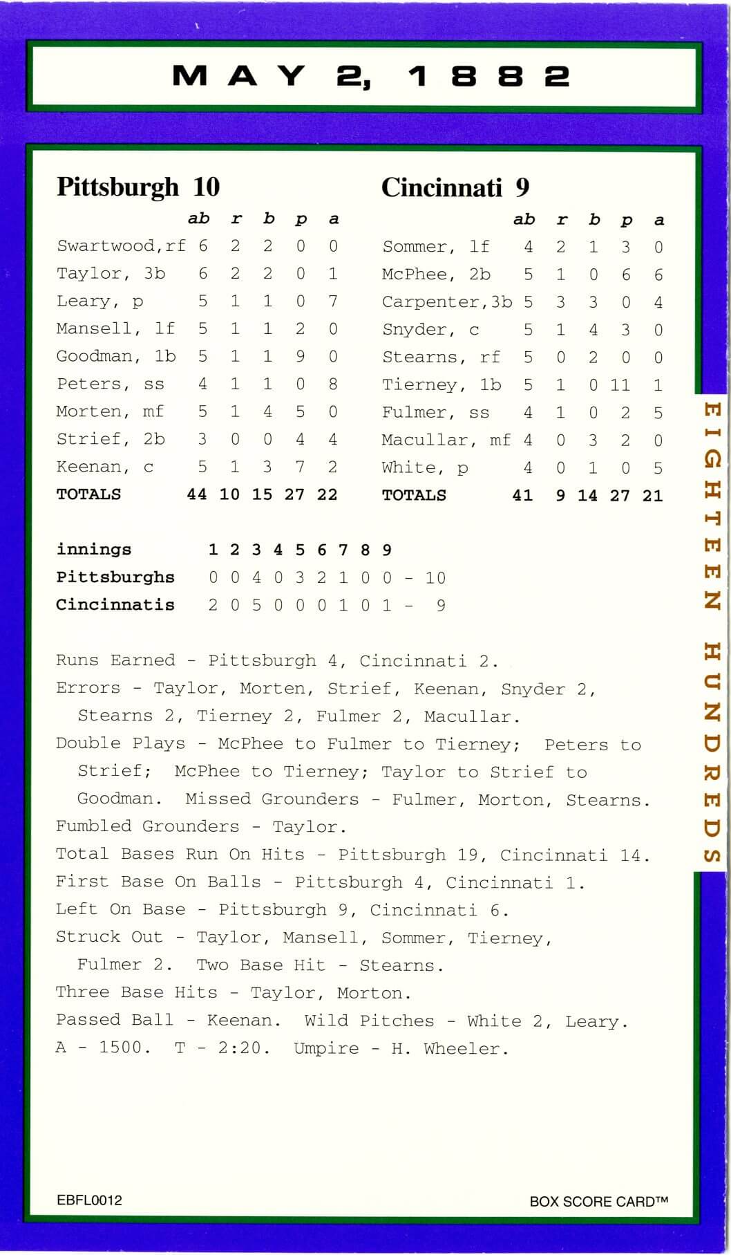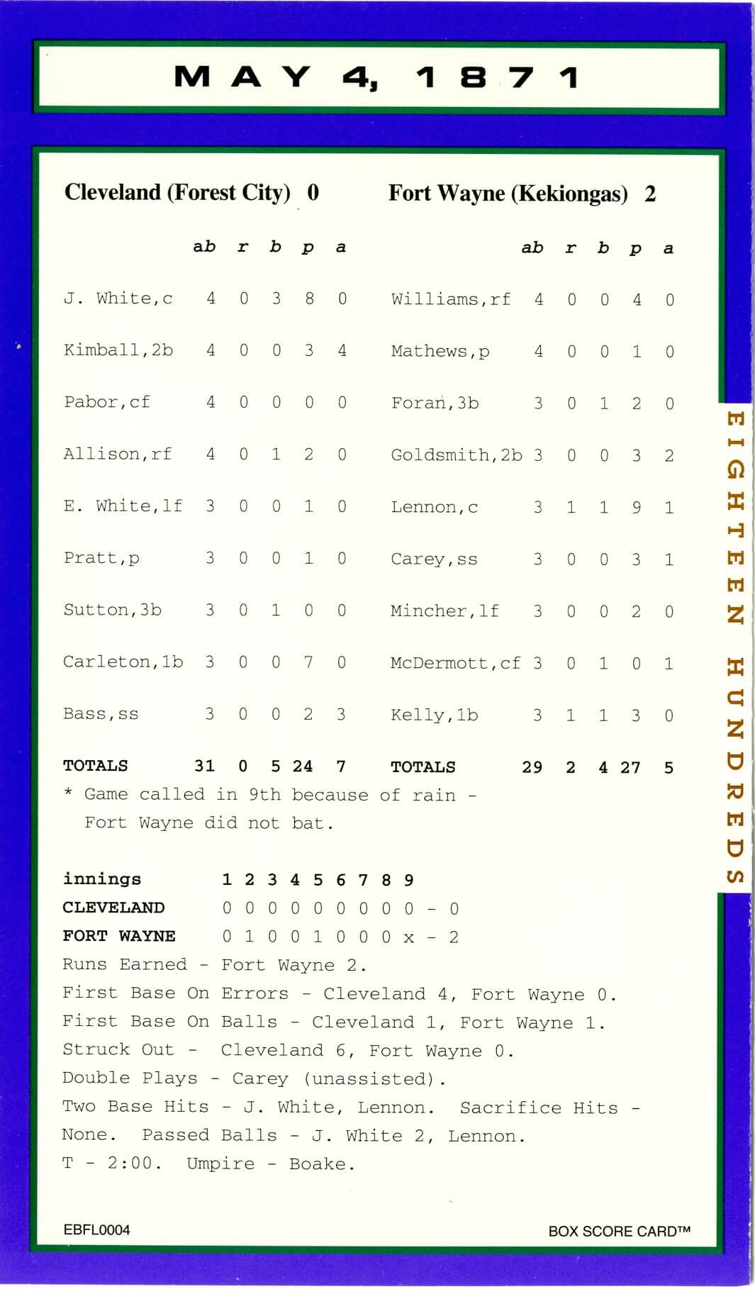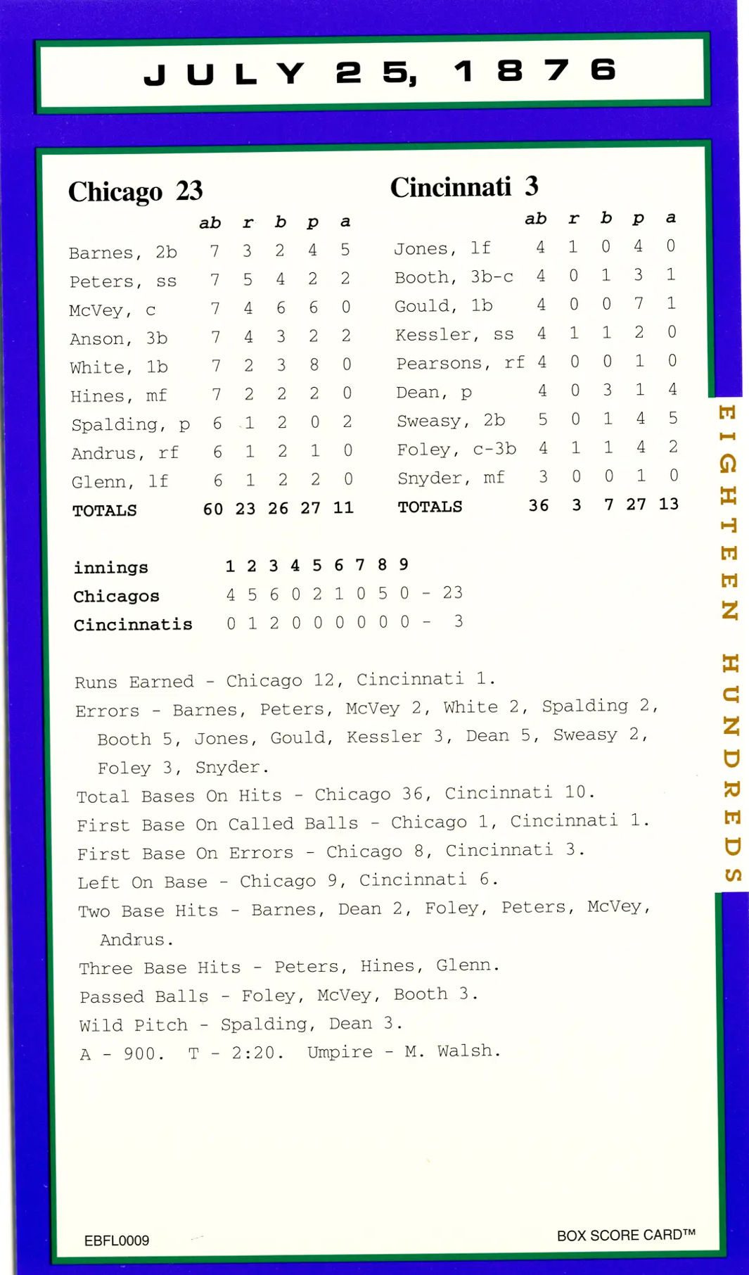 Baseball’s Box Score Eighteen Hundred Series