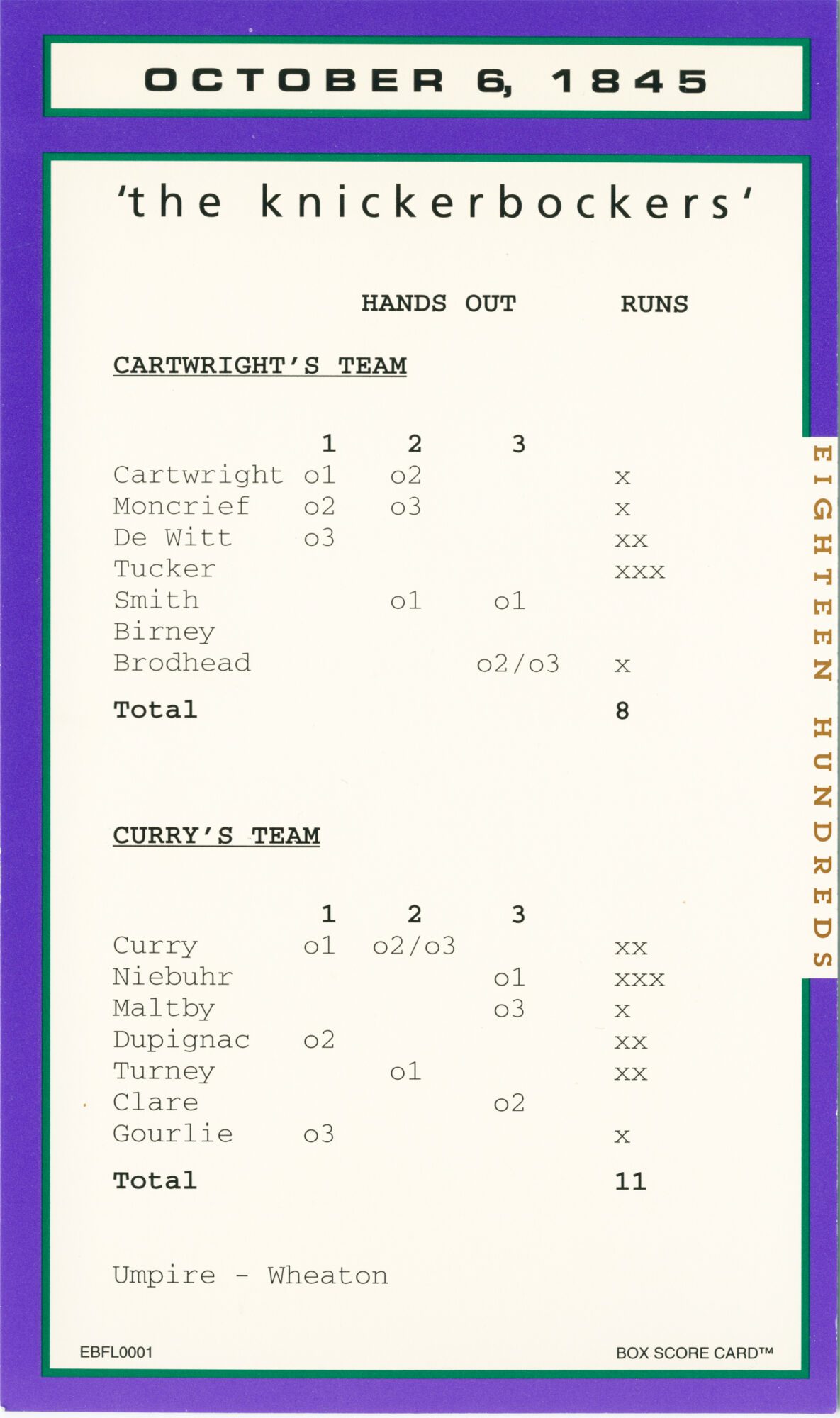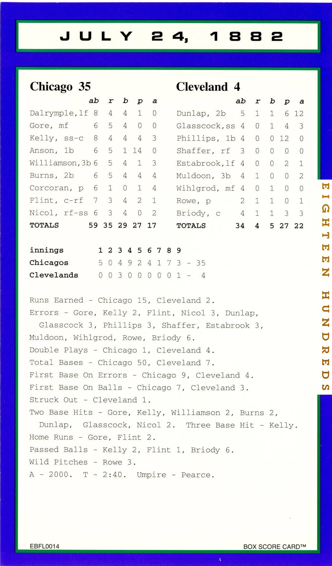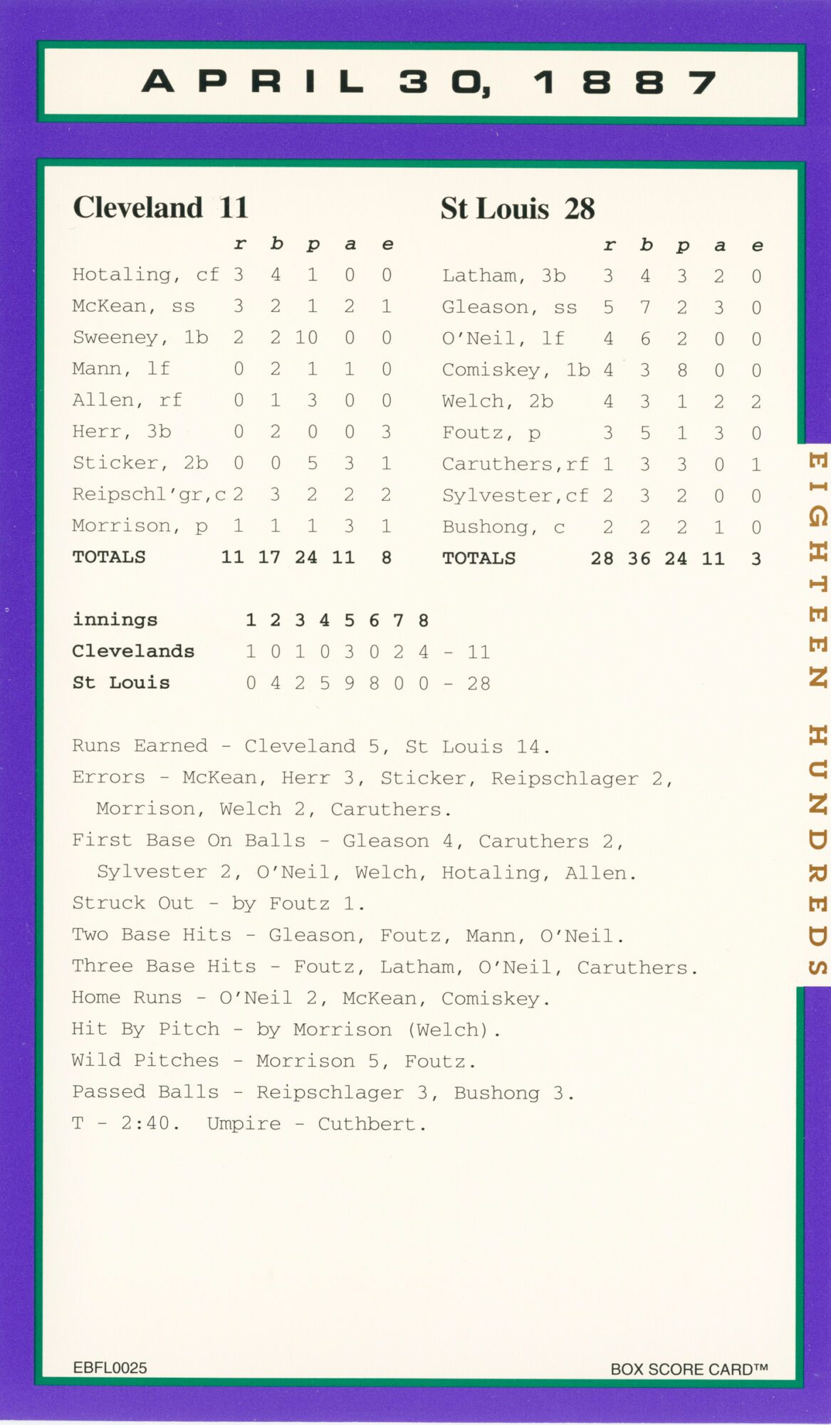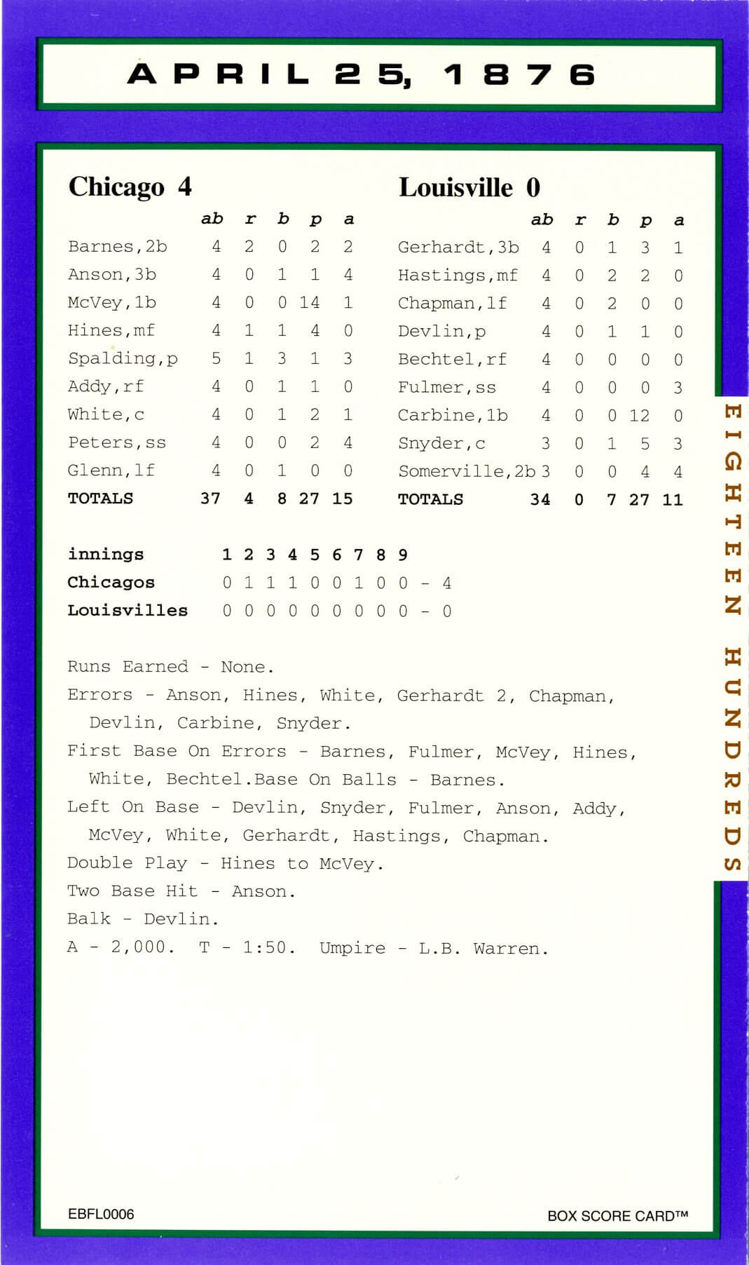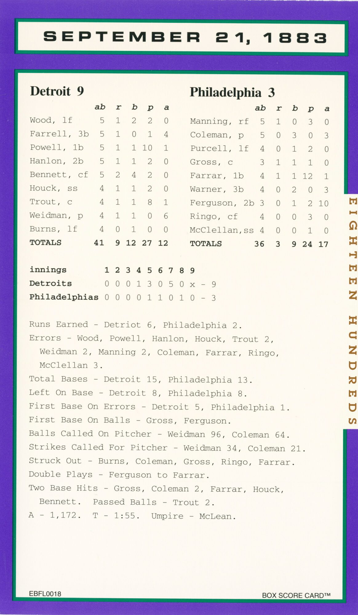 Baseball’s Box Score Eighteen Hundred Series