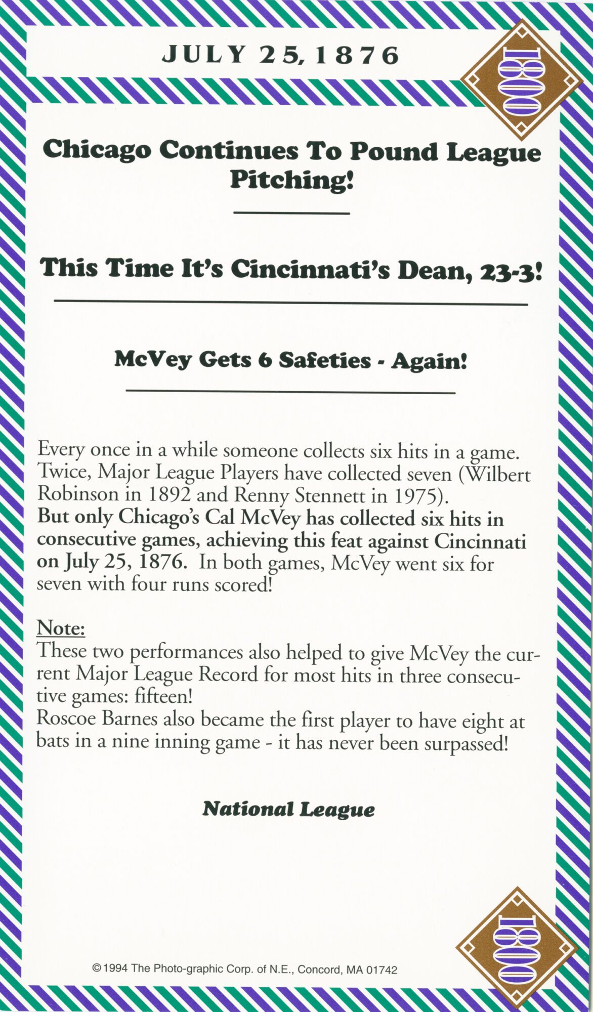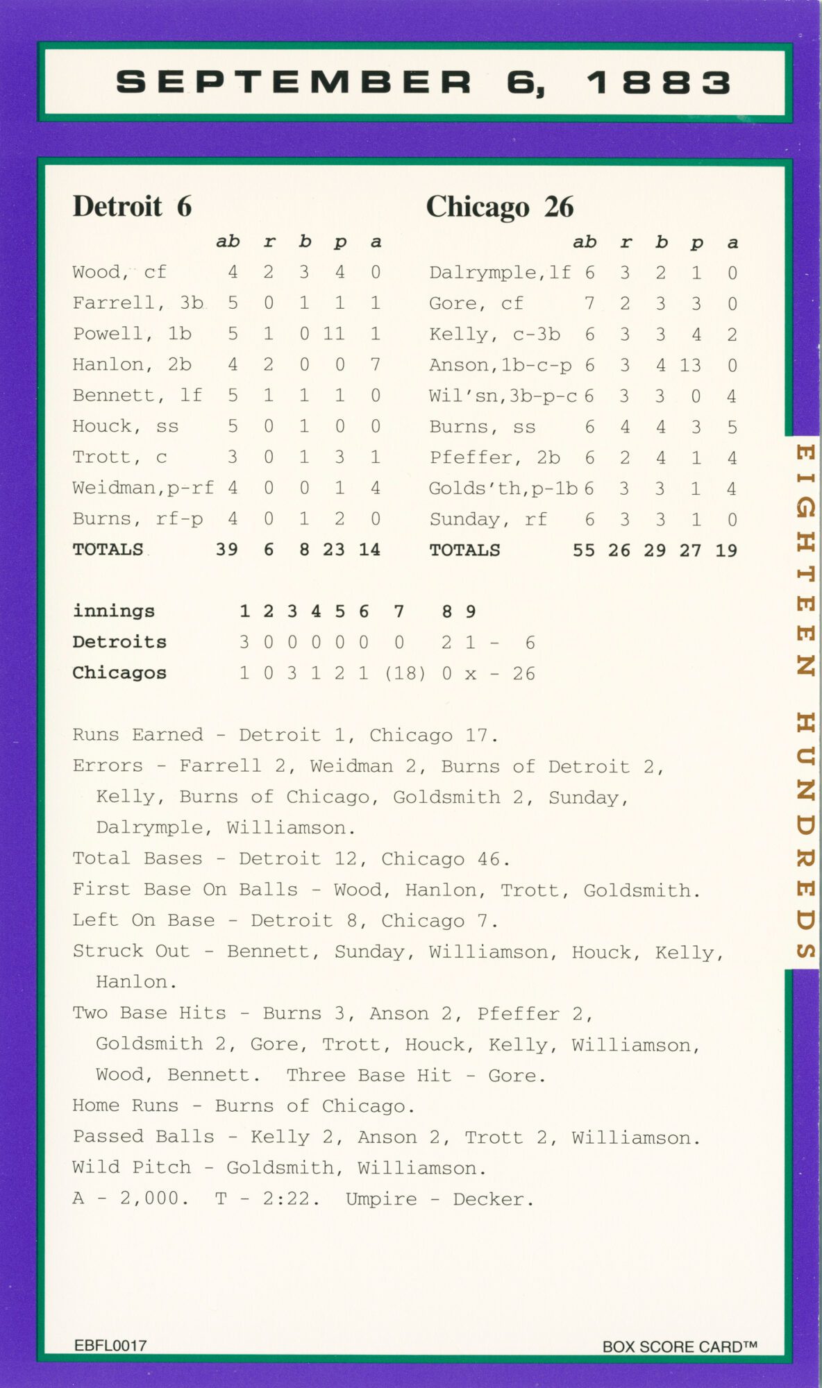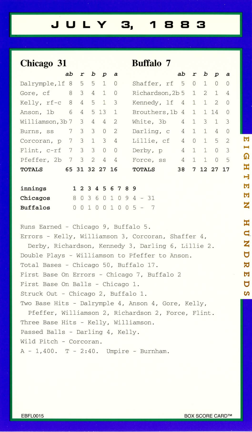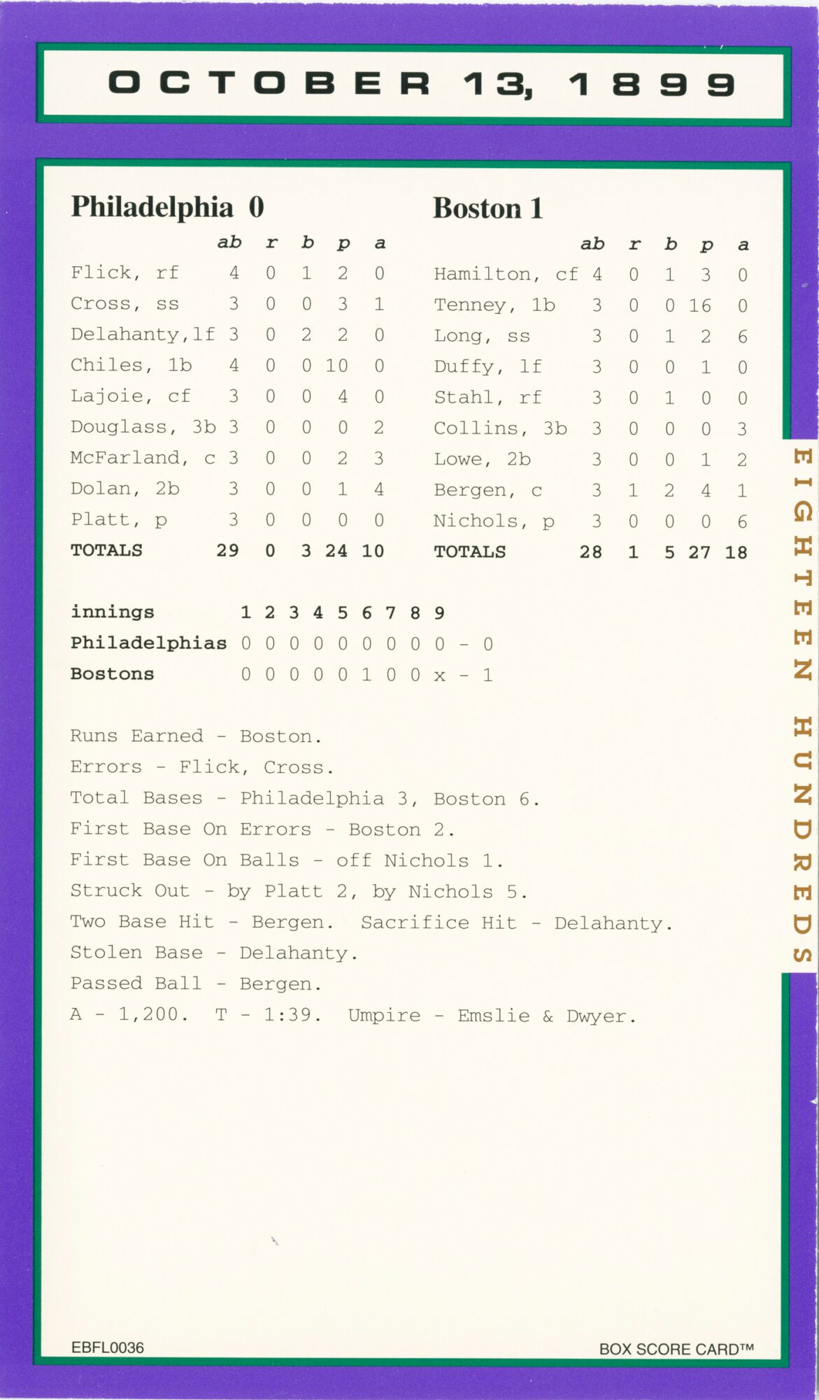 Baseball’s Box Score Eighteen Hundred Series
