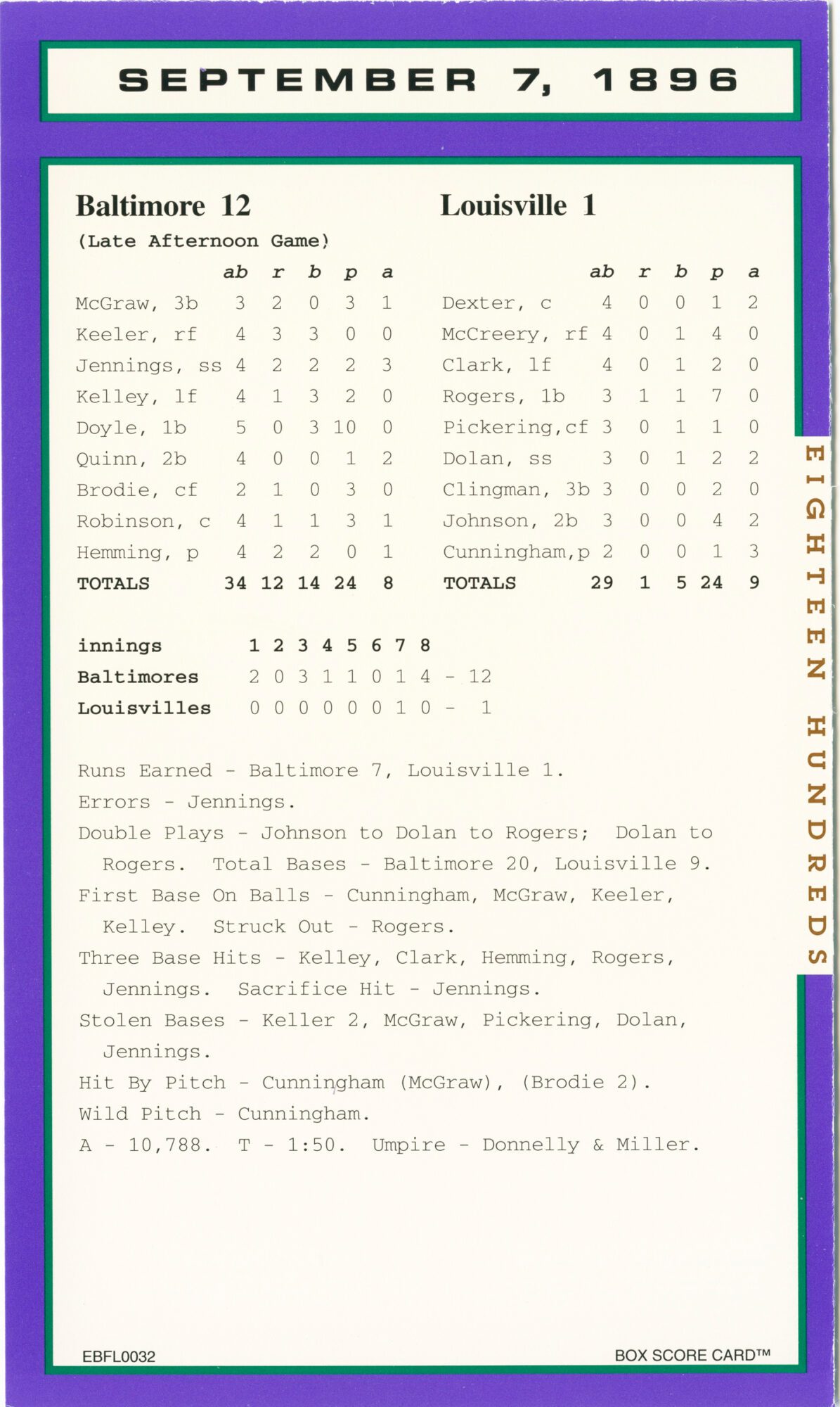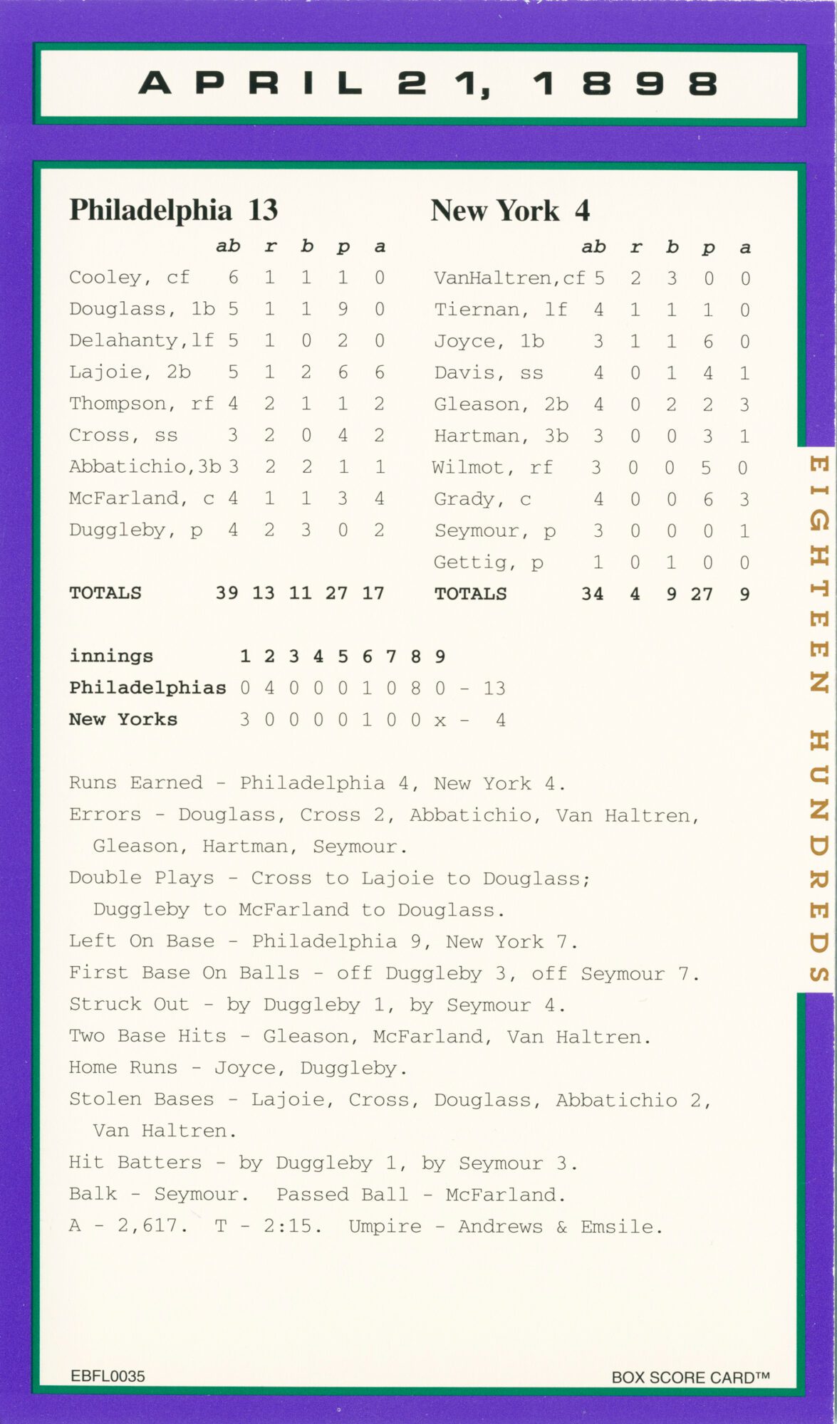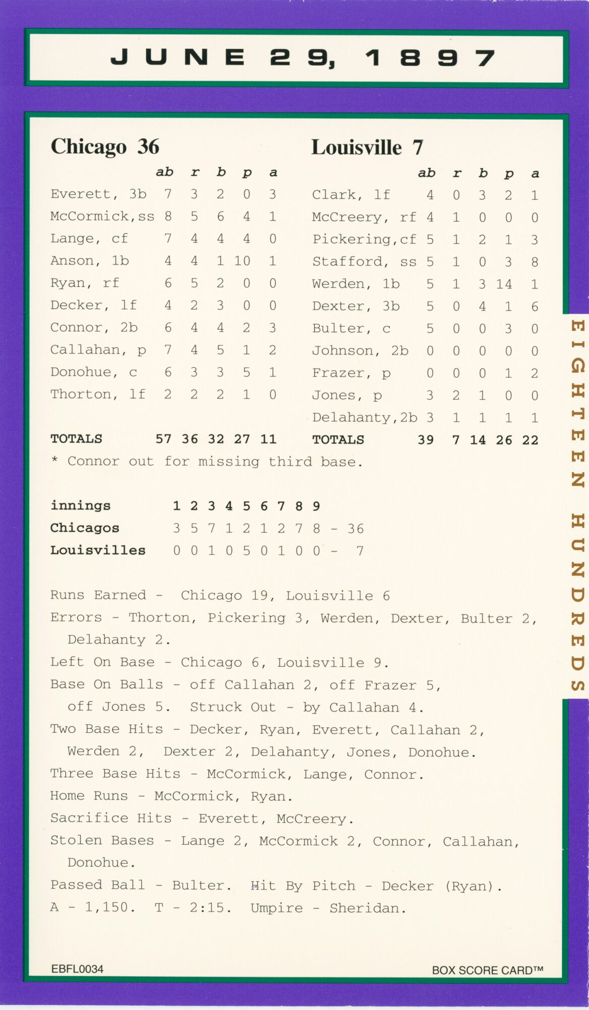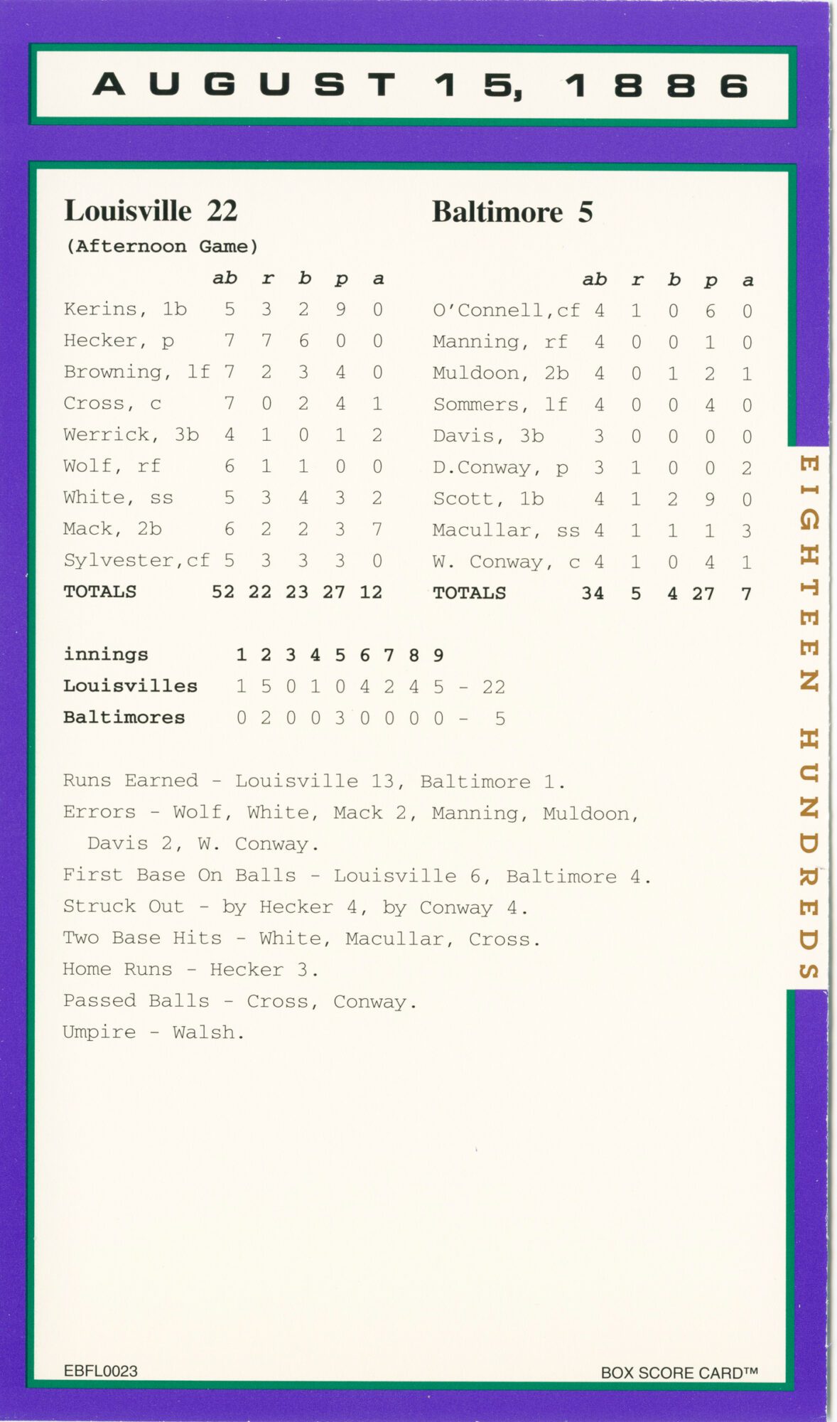 Baseball’s Box Score Eighteen Hundred Series