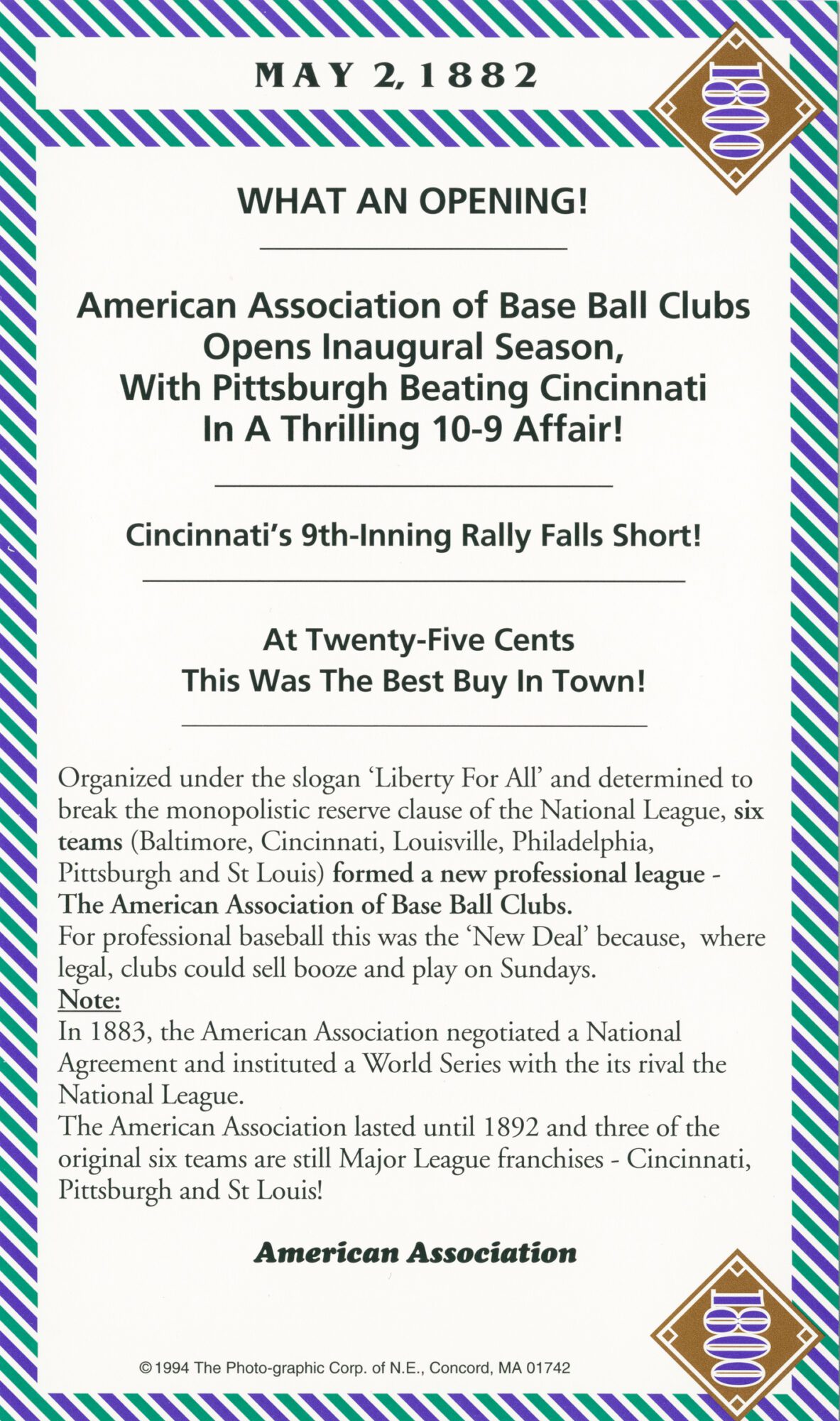 (New league opens season – Union Association)