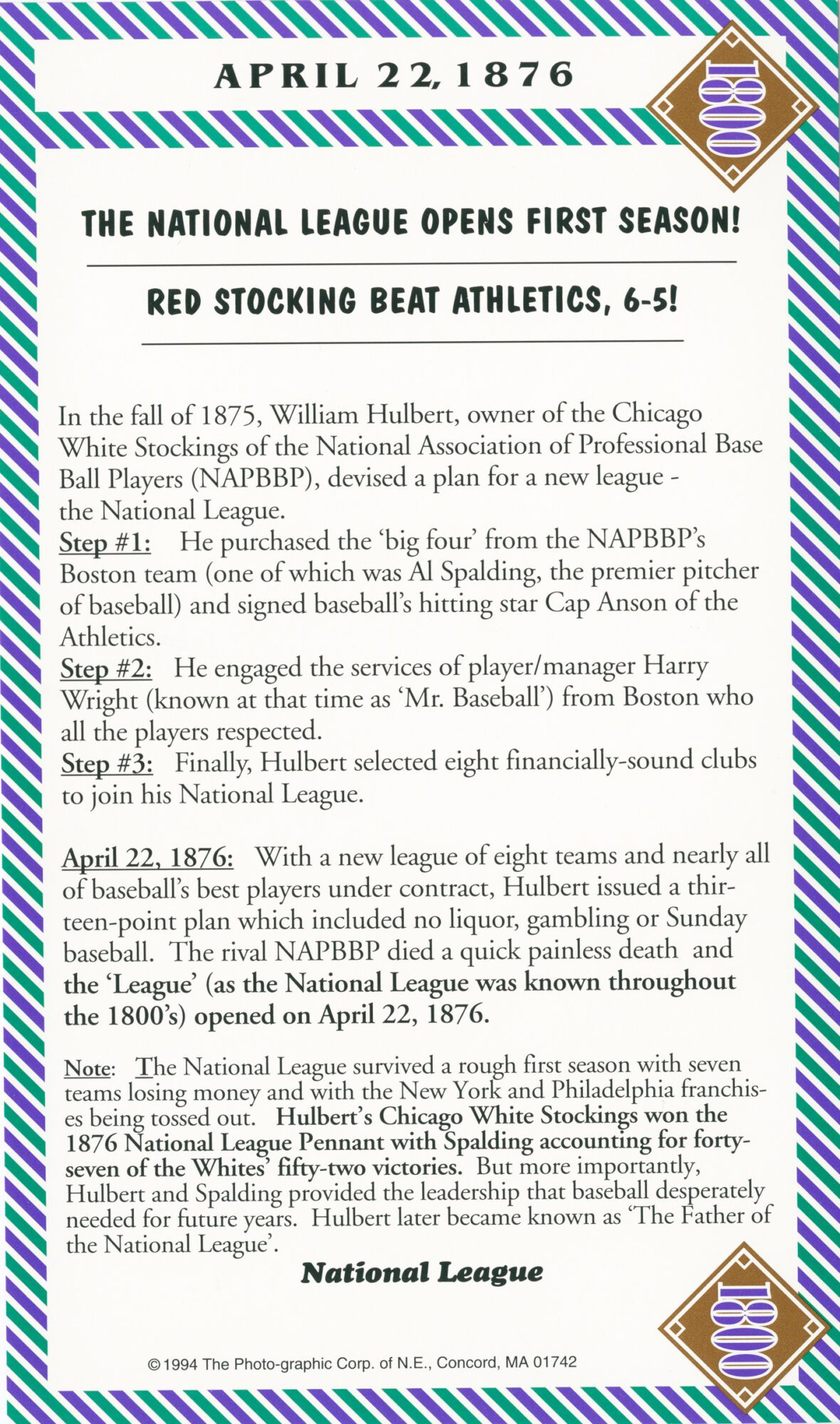 (National League opens first season,140 years ago)