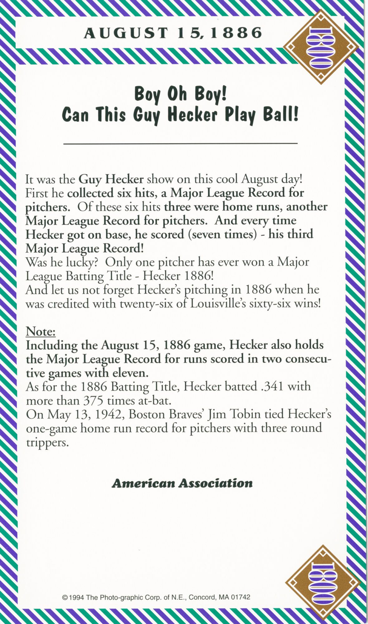 (What a day for pitcher Guy Hecker!)