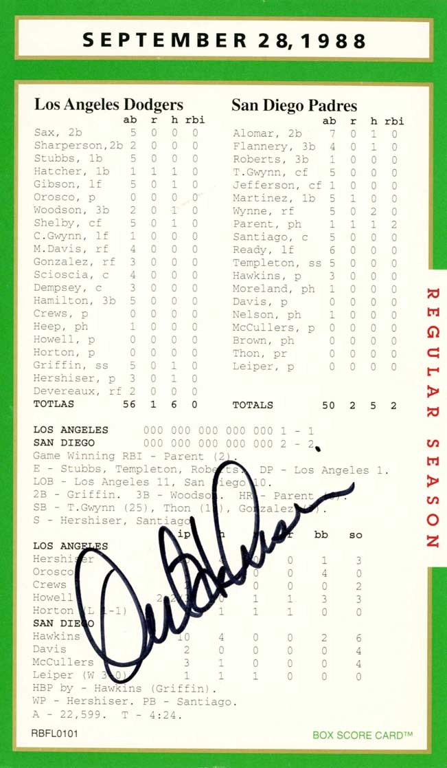 Autograph(s): Orel Hershiser.