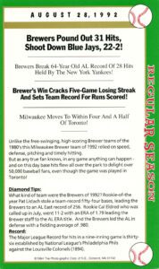 What a display of hitting game, thirty-one hits by the Milwaukee Brewers the modern-day record for a nine-inning game. And Kevin Seitzer led the way with five.