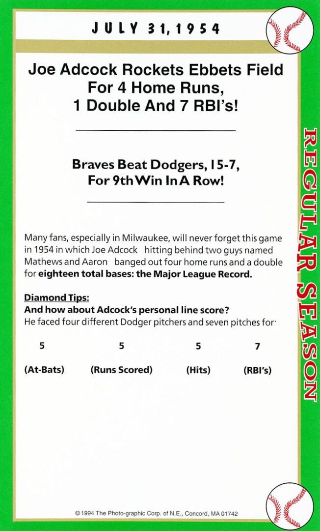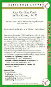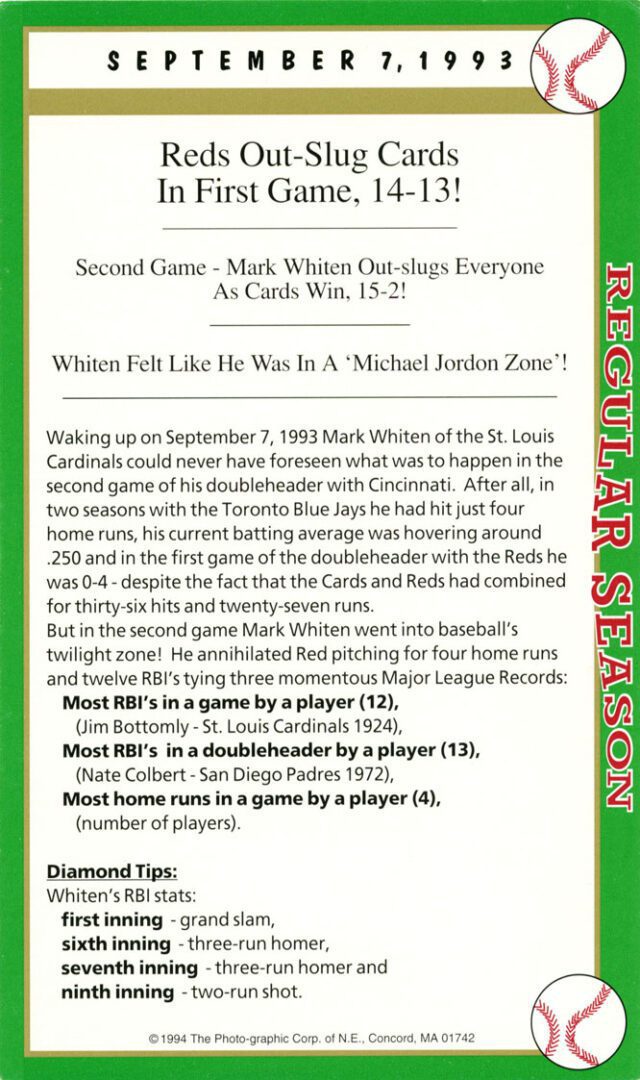 Look at the box score game card, it says it all. No batter before or since has statically had a better game than Mark Whiten did on 9/7/93.