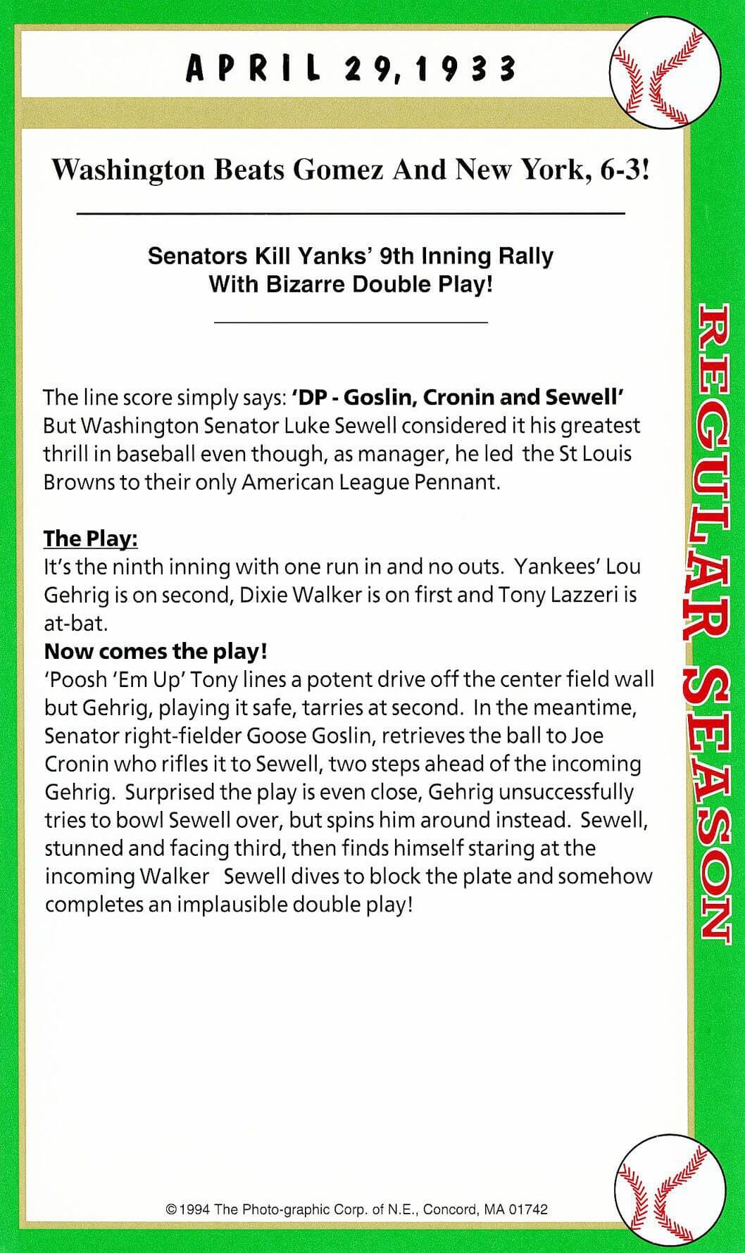 Note: Frankie Crosetti autograph is on three of these early year cards because he happened to have played in these three historic games, would become a good friend and was one of only a few players alive to sign.