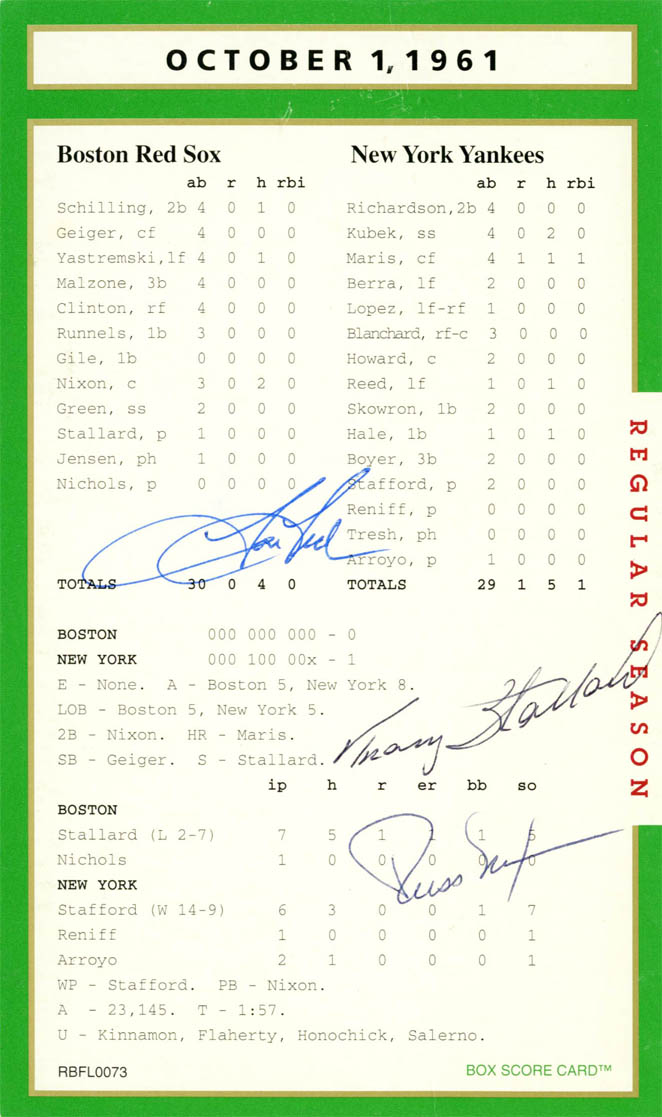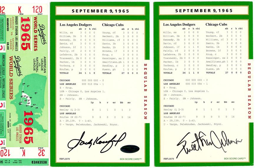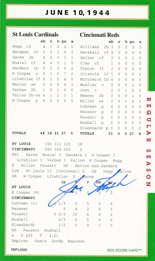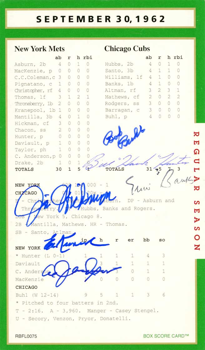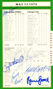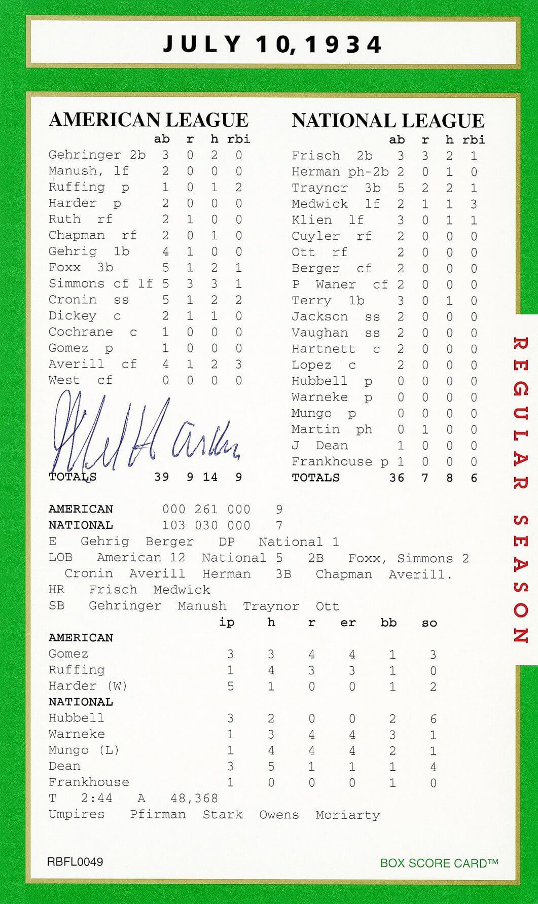 This truly is one of the set’s most treasured autograph box score card.