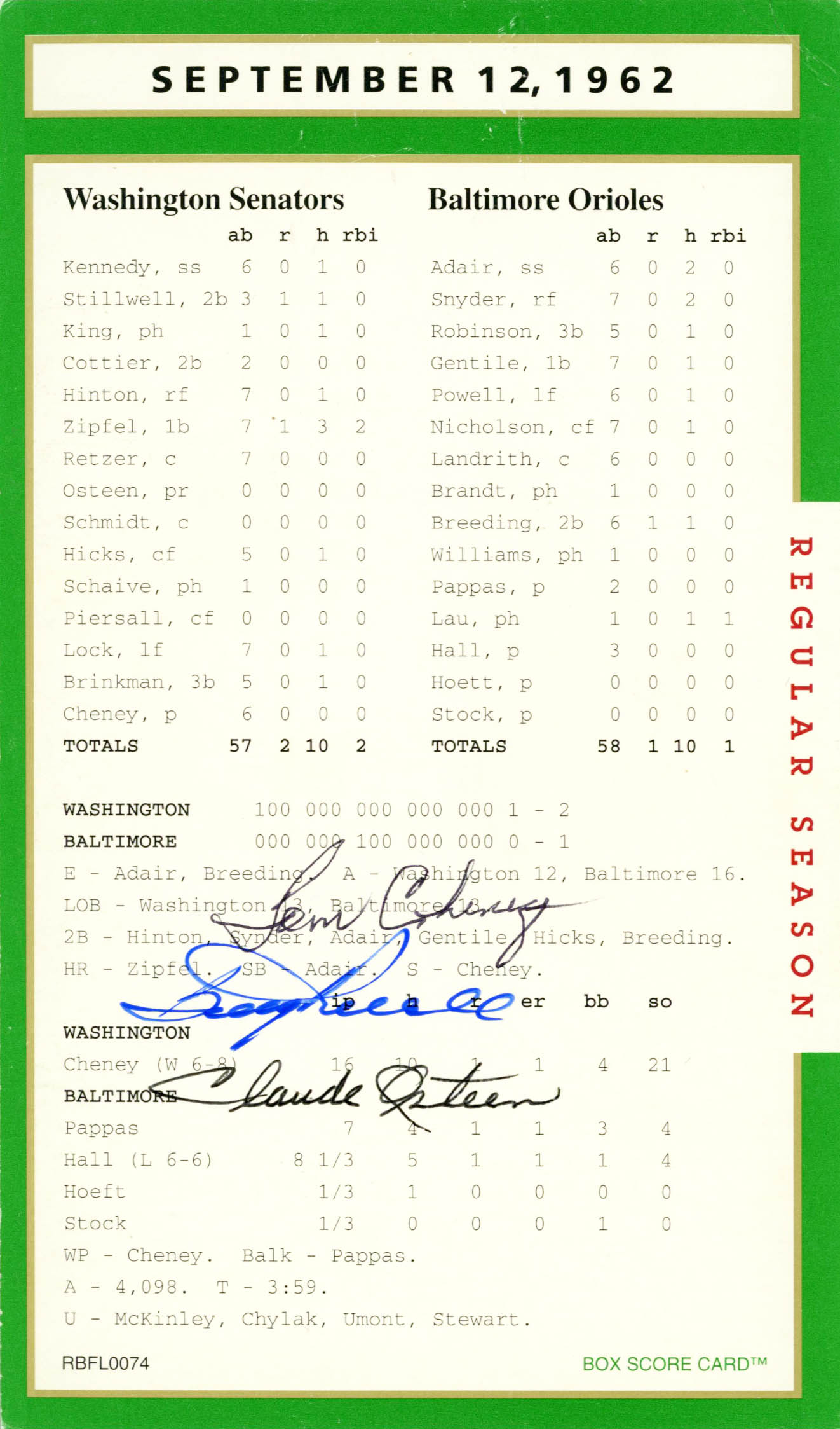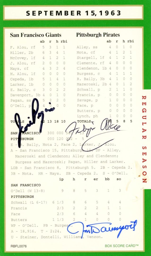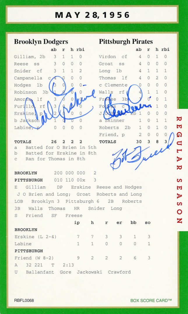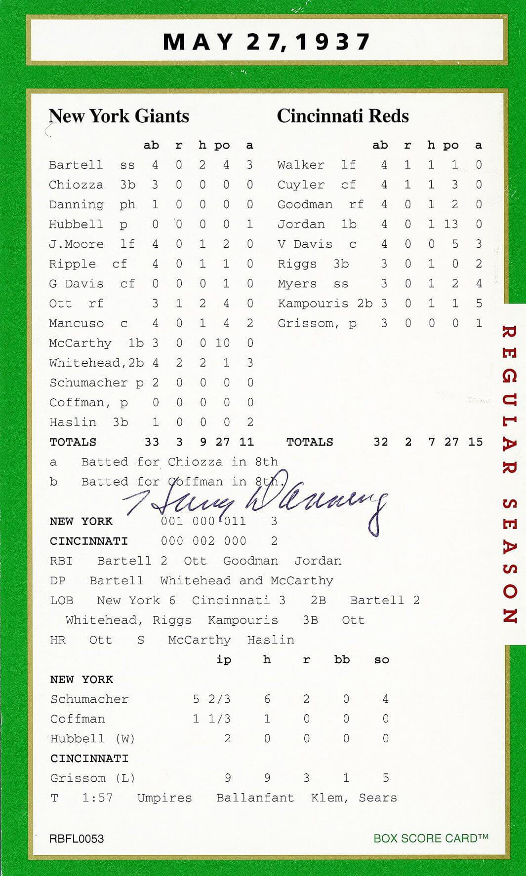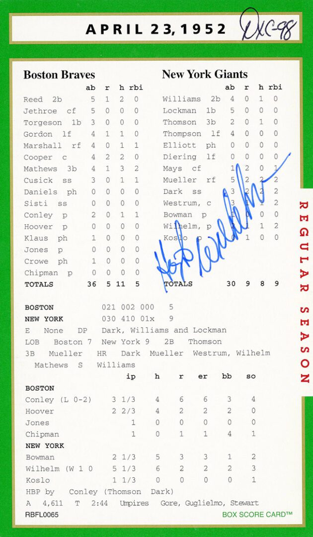 This truly is one of the set’s most treasured autograph box score card.