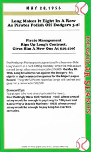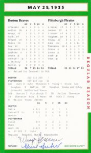 As for Woody Jensen, he had a solid nine-year career with a batting average of .285. While Gus Suhr called up from the San Francisco Seals after a 1929 season in which hit .381 with 51 home runs and 177 RBI, had a ten-year career with a batting average .279. And, while with the Pirates, Suhr would set the NL record for consecutive games played (822) … later broken by Stan Musial and currently held by Steve Garvey.