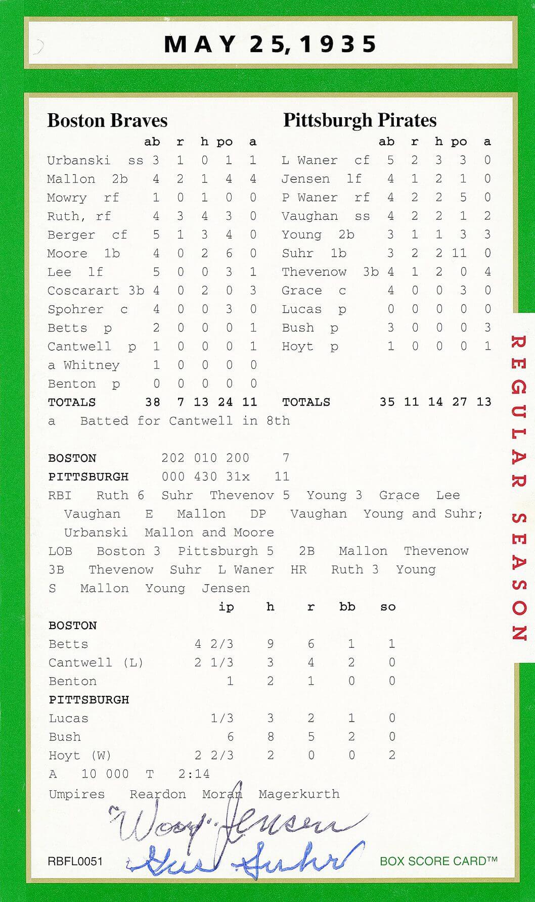 Autograph(s): Woody Jensen (D); Gus Suhr (D).