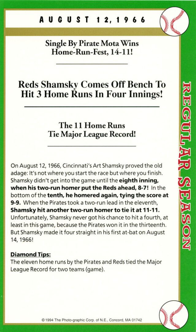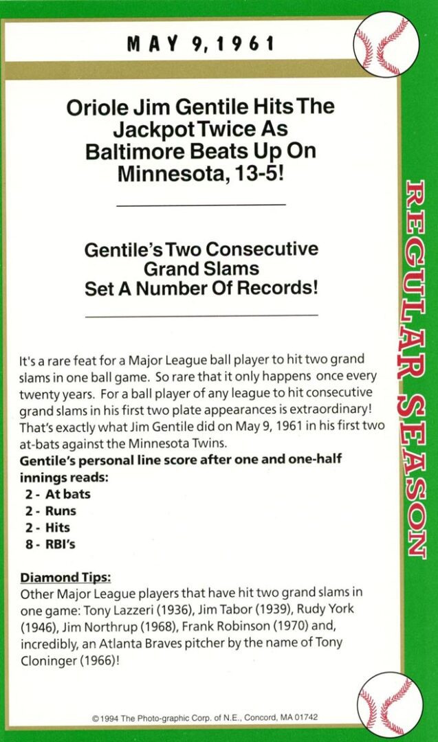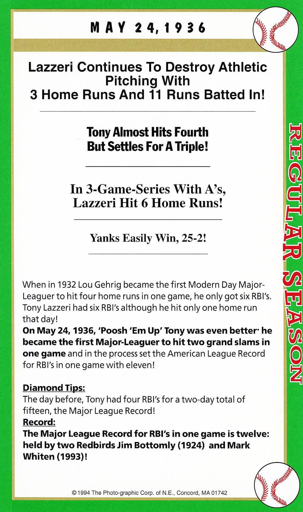 ‘Poosh EM UP’ Tony on this day became the first MLB player to hit two jackpot homers (grand slam) in the same game and set the AL record for most RBIs in one game – 11!
