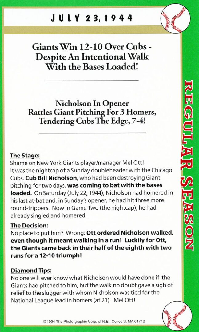 Autograph(s): Tot Pressnell (D); Pete Coscarart (D).