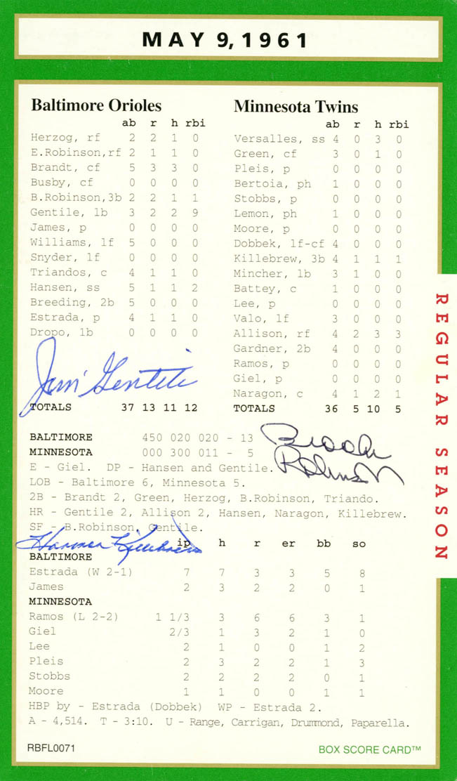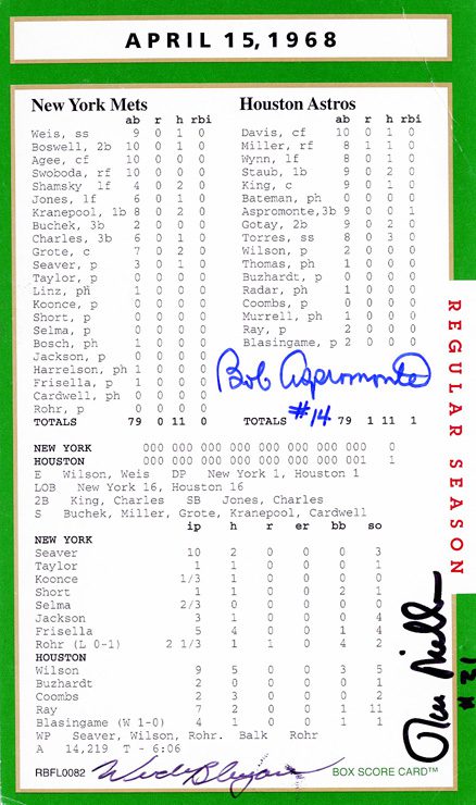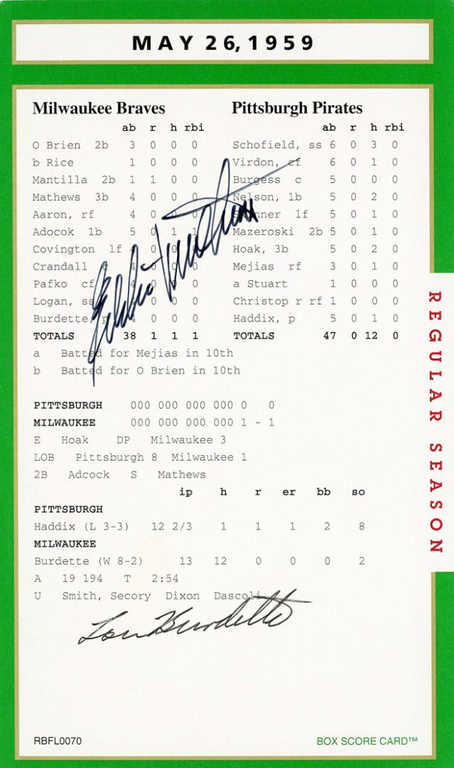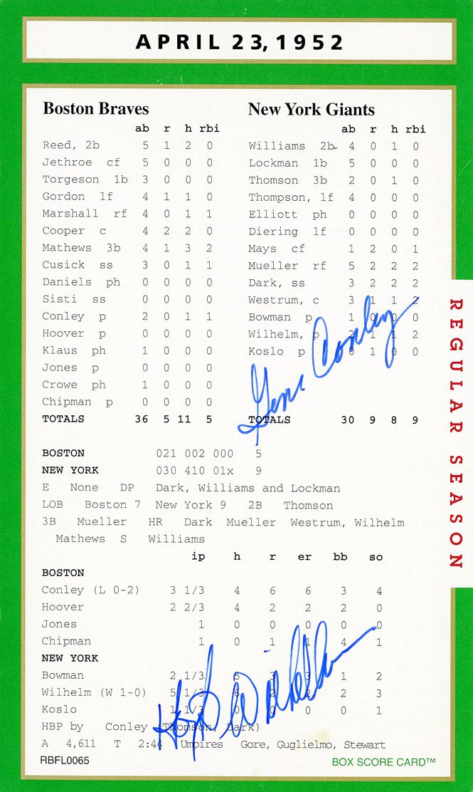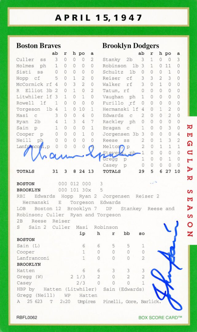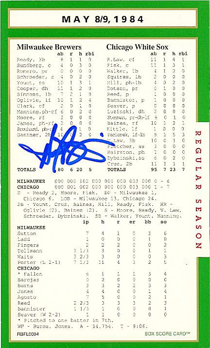 Anytime you have an historic box score game card with an MLB player signature, that is certainly something special.