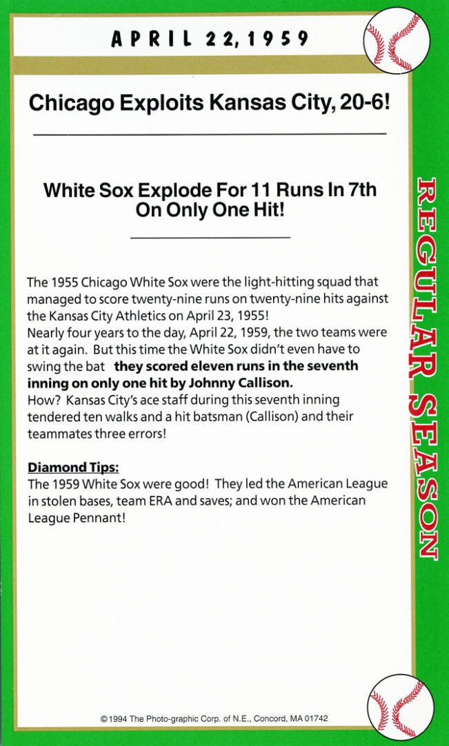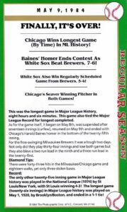 Card #1 – Harold Baines (autograph) walk-off home run in the 26th inning, longest MLB game by time. Card # 2 – signatures of players who played all 26 innings.