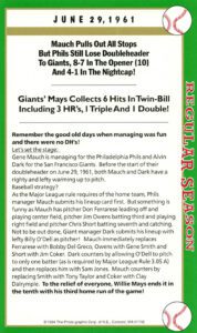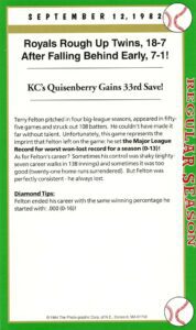 There is not much to comment here except that Gagne & Hrbek were part of this unique event. However, this card is symbolic to the set because it illustrates the allure of baseball’s … one can go from riches-to-rages in an instant. An everyday box score game card that gives that gives this is signature set its distinctiveness. But don’t think that these (signatures) were run of the mill ball players. All had solid careers.