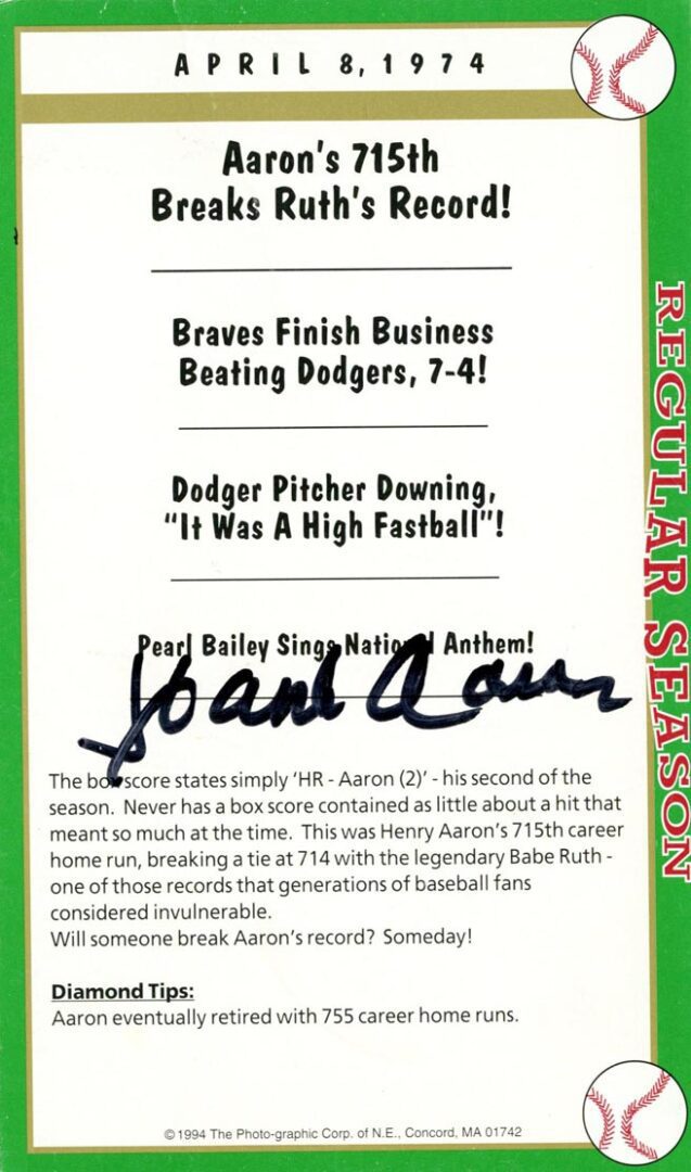 Enjoy viewing the signed box score game cards and definitely click the article side for the story to appreciate the significance and timing of the autograph.