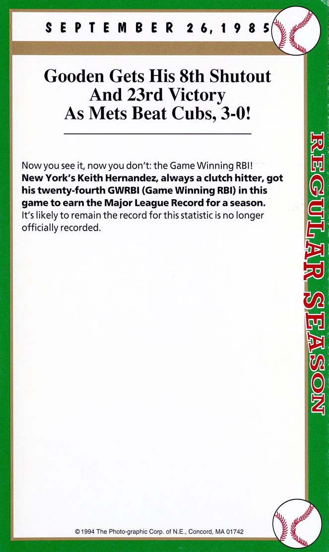 Card Date: September 26, 1985