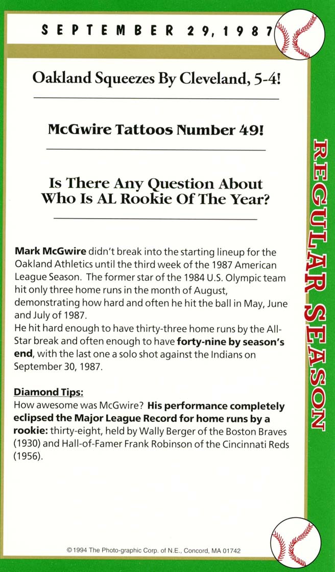 Autograph(s): Card #1 – Mark McGwire. Card #2 – Dennis Eckersley – HOF.